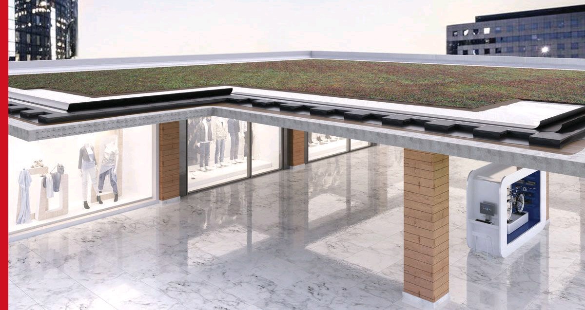 budynkach biurowych i handlowych, gdzie dach przekształca się w strefę parkingową,